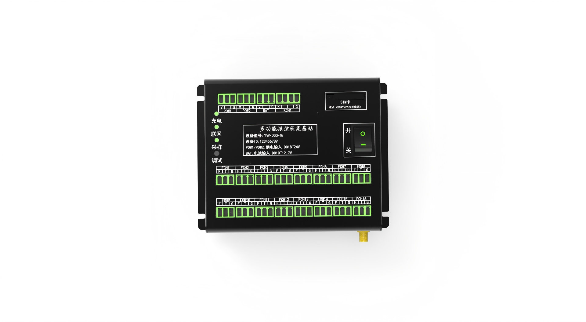 智能采集仪由户外防水机箱、大容量锂电池、智能采集控制器、高增益馈线天线等组成,通过机箱自带的安装固定配件进行挂墙安装。